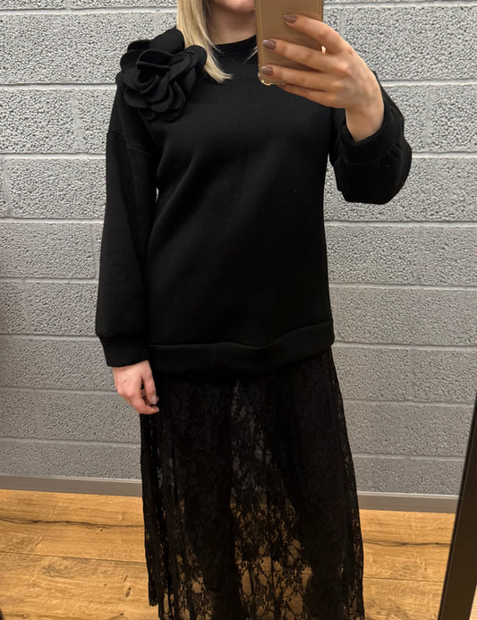 MELNA KOKVILNAS KLEITA AR MEŽĢĪŅU SVĀRKU DAĻU